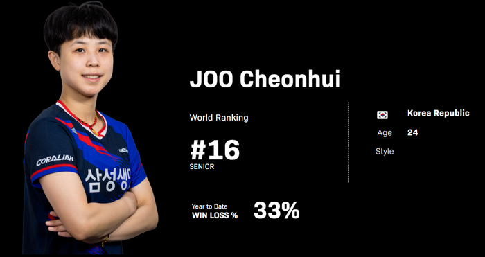 朱芊曦在WTT的舞台上表现出色,她与申裕斌两人已经成为韩乒女队的领头羊,目前她的世界排名第16,每次参与WTT的大型赛事都让中国、日本的强者们感到紧张,去年在中国大满贯中,她接连击败了伊藤美诚、石洵瑶进入八强,她已经被评为韩乒的秘密武器。